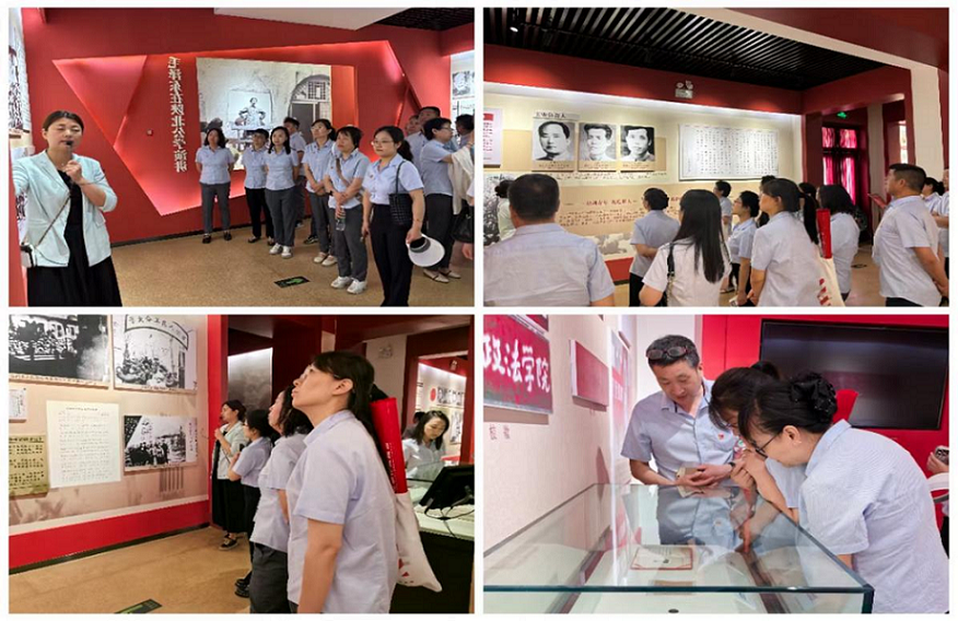 在講解員的引導(dǎo)下,大家依次走進(jìn)各個(gè)展廳,認(rèn)真聆聽(tīng)著那段波瀾壯闊的歷史。展廳內(nèi)珍貴的歷史照片、詳實(shí)的文字資料和保存完好的實(shí)物展品,如“木板當(dāng)課桌”,彰顯先輩奮斗精神,生動(dòng)地再現(xiàn)了當(dāng)年學(xué)校的教學(xué)場(chǎng)景和師生們的學(xué)習(xí)生活。大家不時(shí)駐足停留,仔細(xì)觀看每一件展品,深入了解每一個(gè)歷史細(xì)節(jié),仿佛穿越時(shí)空,感受到了先輩們?yōu)榱死硐牒托拍疃恍笂^斗的精神力量。這一過(guò)程,恰似一次深入的調(diào)查研究,讓黨員干部們從歷史中汲取智慧和力量,以更加務(wù)實(shí)的態(tài)度和作風(fēng)投入到實(shí)際工作中。